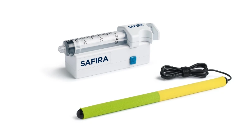 O SAFIRA® torna a anestesia regional ser um procedimento realizado apenas por uma pessoa, colocando total controle na mão do anestesiologista. Uma solução segura e exclusiva projetada para monitorar com precisão a pressão da injeção. Aumenta significativamente a segurança do paciente evitando danos nos nervos resultantes do procedimento de anestesia regional convencional.